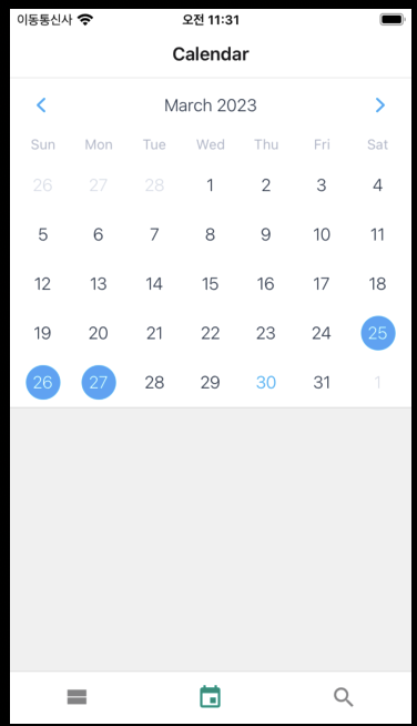 이는 Calendar에 onDayPress라는 Porps를 설정해 구현하겠습니다.
