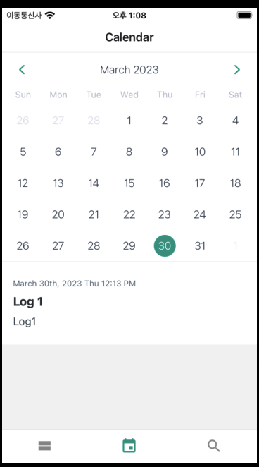 이번에는 특정 날짜를 선택했을 때 그날 작성된 로그들을 달력 하단에