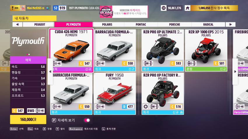 PLYMOUTH CUDA 타고 아무 아케이드 완료 하시면 됩니다.